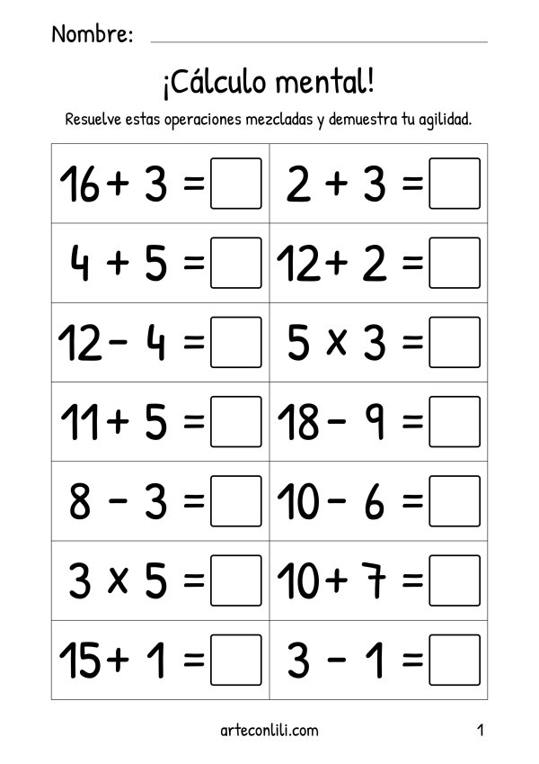 Transforma las horas de estudio en momentos divertidos con nuestras hojas de trabajo de matemáticas. Ideales para padres y educadores, son una herramienta imprescindible para el desarrollo de las competencias básicas en matemáticas de tus pequeños. ¡Descarga ahora y empieza a aprender jugando!